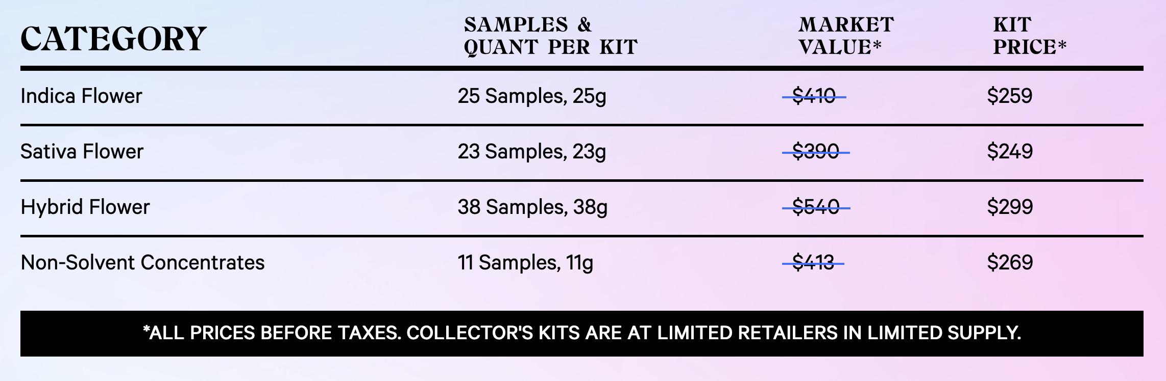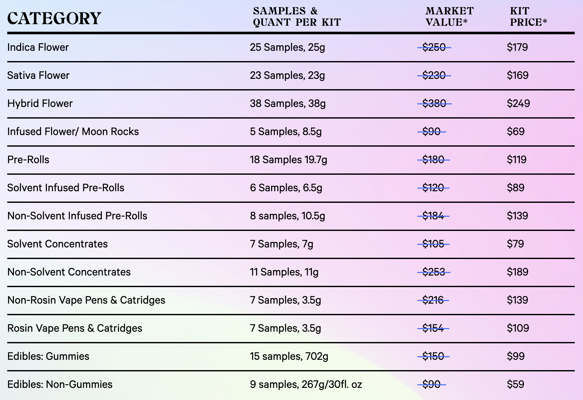 You’ll have to narrow down what you like or purchase mulitple kits if you’re a cannabis connaisseur (like myself).